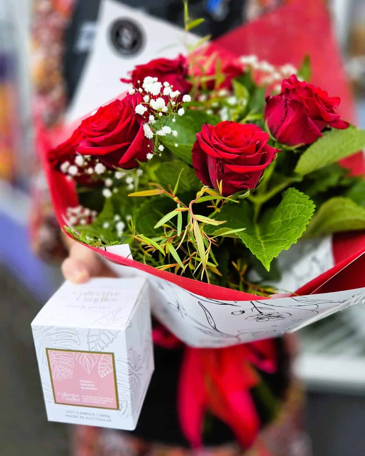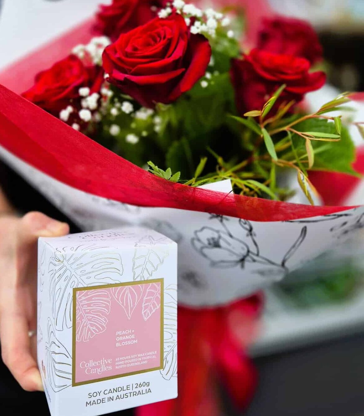 Choose your preferred candle scent from Caramel Vanilla, Japanese Honeysuckle, Peach Orange Blossom, or LUXE, then add a romantic love message. Your message will be handwritten by one of our team in a complimentary Valentine’s gift card and delivered alongside the finest red roses in New Plymouth.