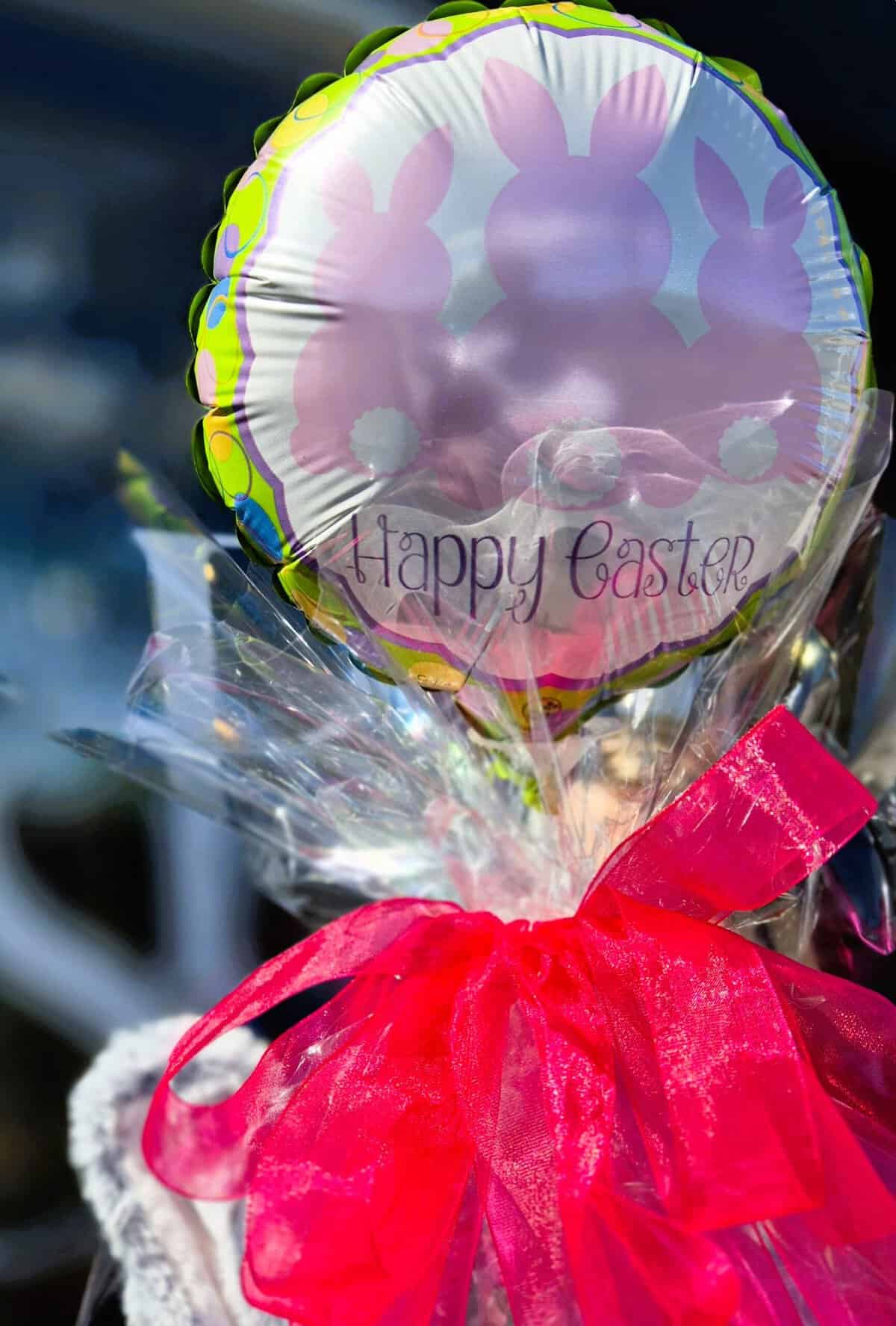 Included in this basket is gourmet mini chocolate eggs, one Cadbury chocolate egg set, one large chocolate bar, a cuddly bunny and a balloon!