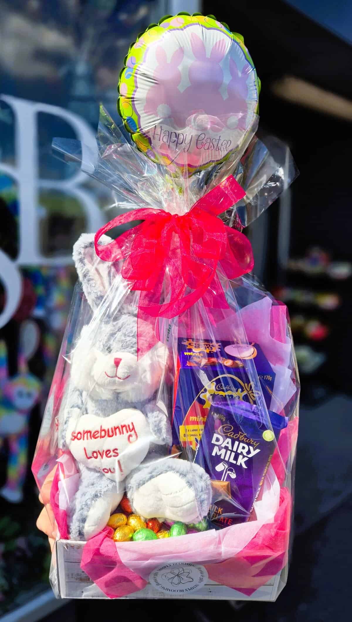 Overflowing with delicious **Cadbury & gourmet chocolate**, this festive hamper is packed with sweet treats everyone knows and loves. We’ve paired these indulgent favourites with an adorable Easter bunny soft toy for cuddles that last long after the chocolate is gone, plus a cheerful bunny balloon to add that extra pop of fun and excitement.