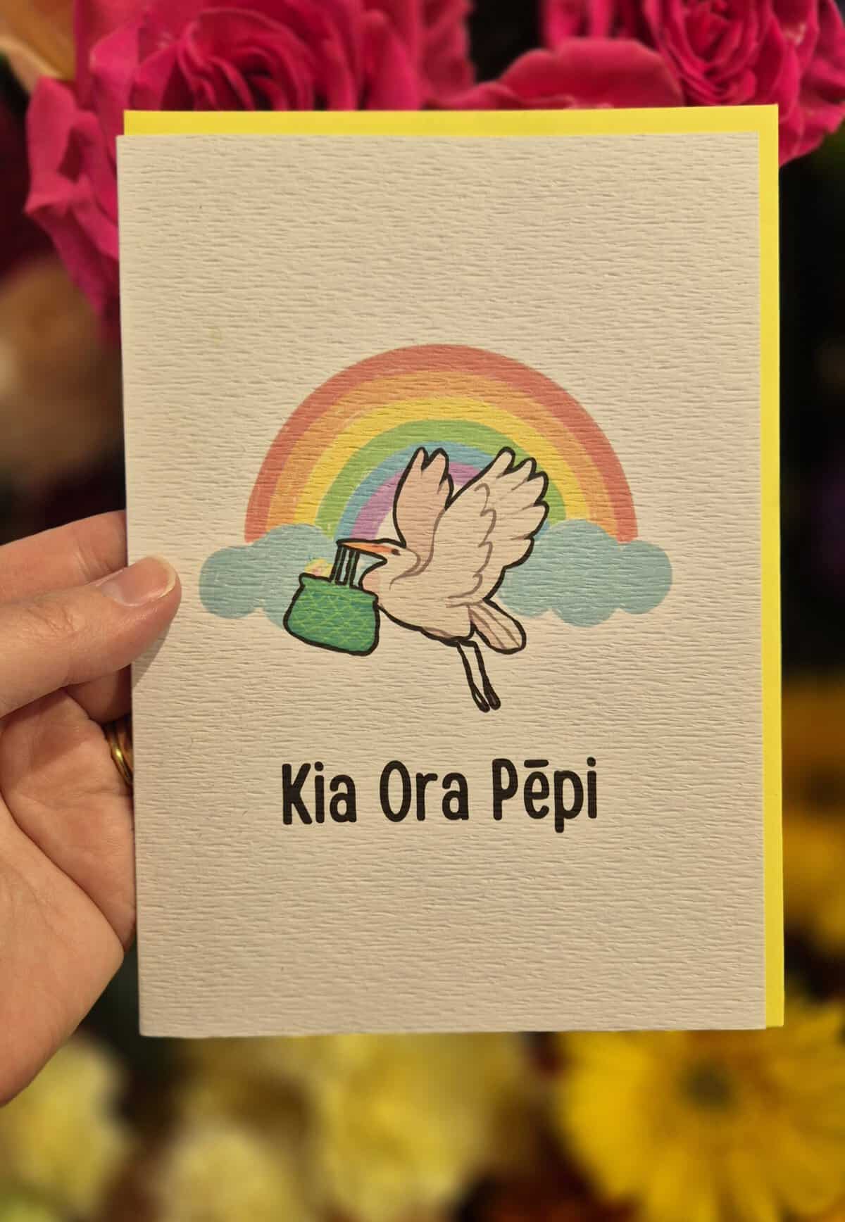 Simply Blooming Florist & Gifts offers this luxury Kia Ora Pēpi greeting card, a beautiful Te Reo Māori greetings baby card designed to celebrate the arrival of a precious new baby with warmth and joy.