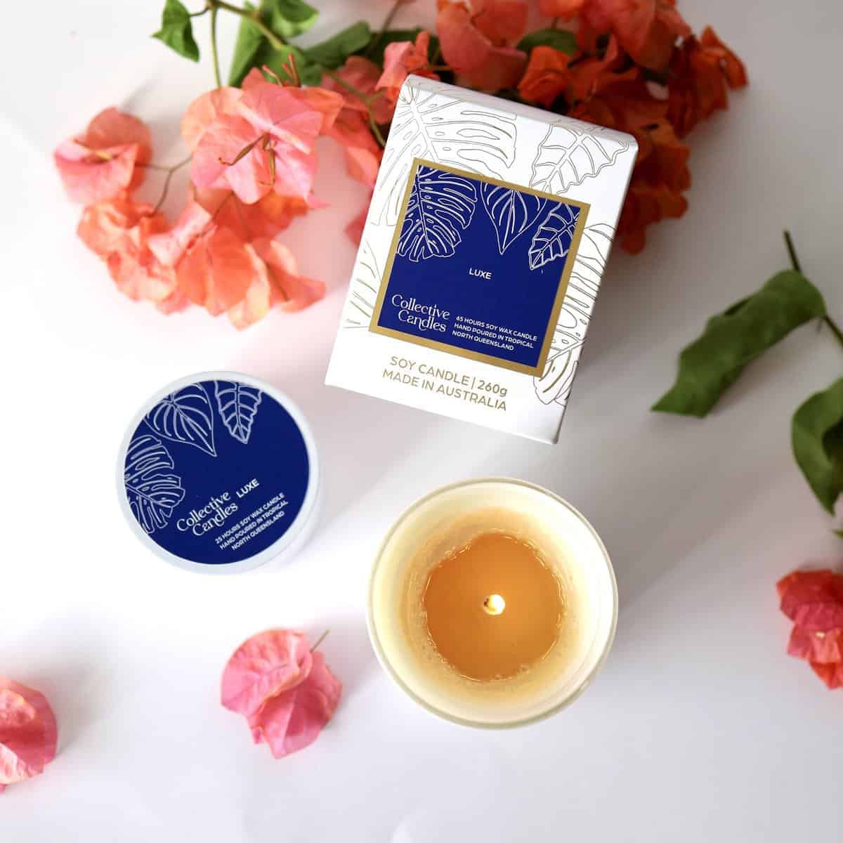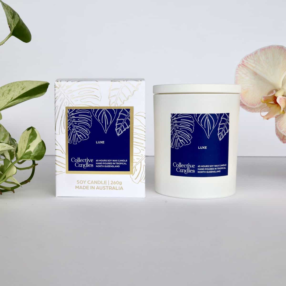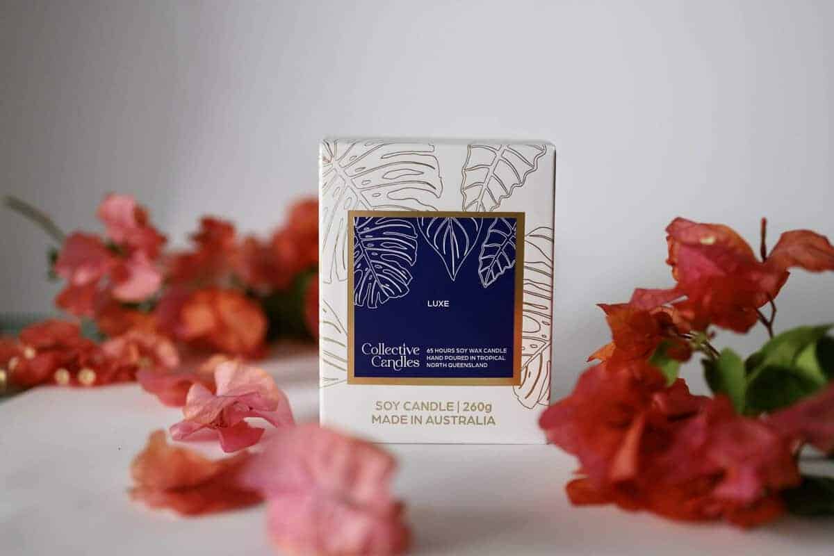 Each scented Soy Candle is individually boxed featuring foiled tropical North Queensland foliage.